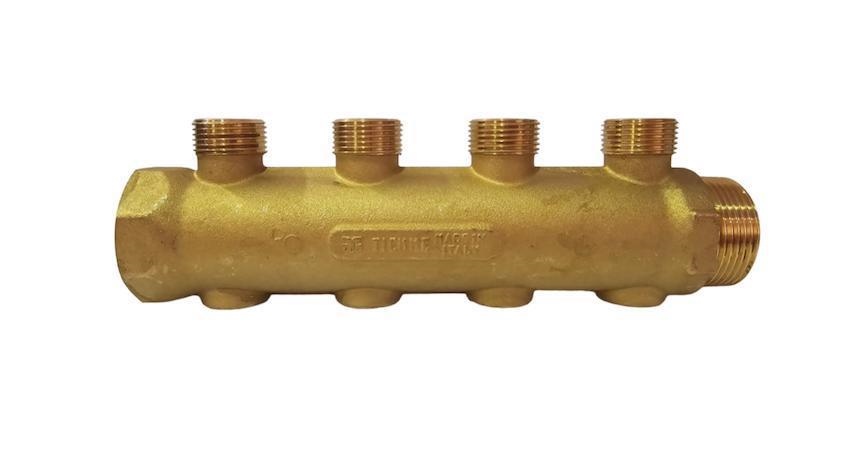 Collettore “LINEARE” in ottone CW617N con interasse 50 mm e uscite 3/4”x18 (EUROCONO)