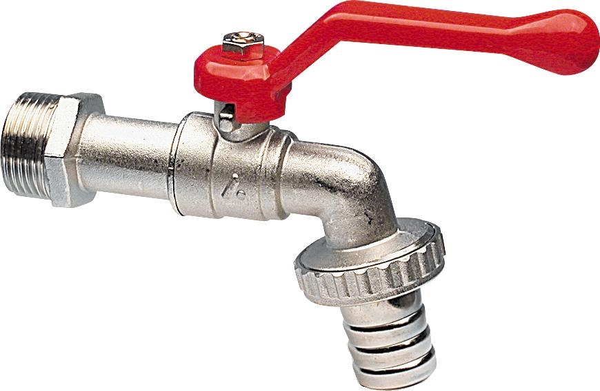 Rubinetto a sfera serie STAR con portagomma, tipo normale, in ottone nichelato. Leva alluminio rossa.