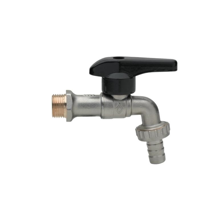 Valvola a sfera per erogazione, con portagomma e leva in alluminio.